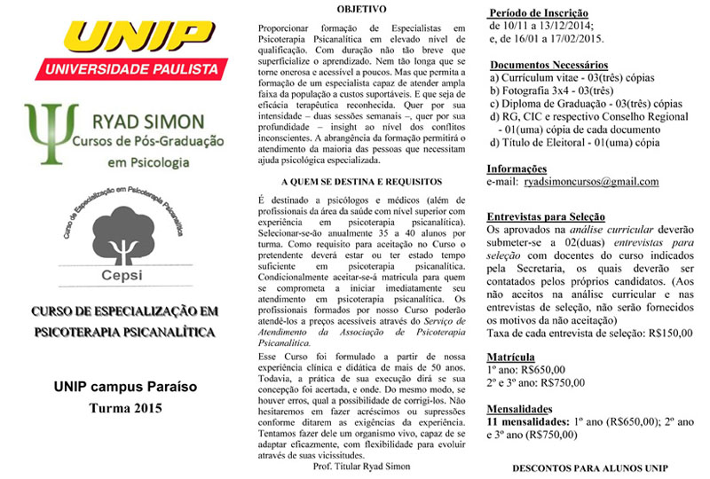 18º Encontro do Curso de Especialização em Psicoterapia Psicanalítica