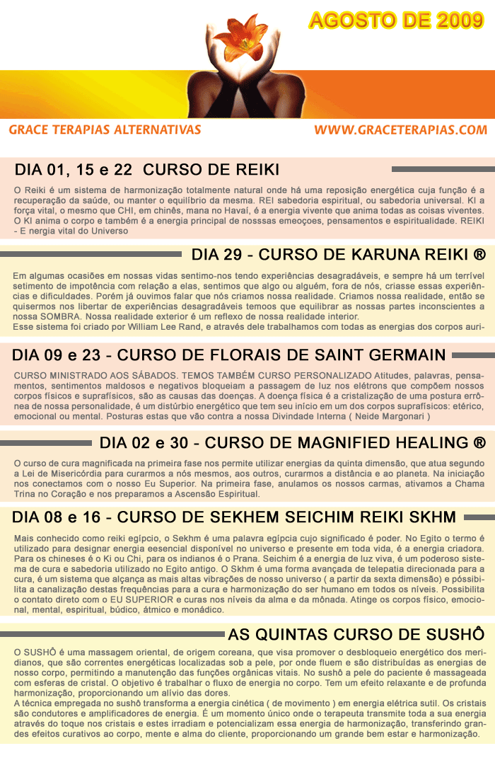 Curso/Evento: Agenda Agosto Grace Terapias