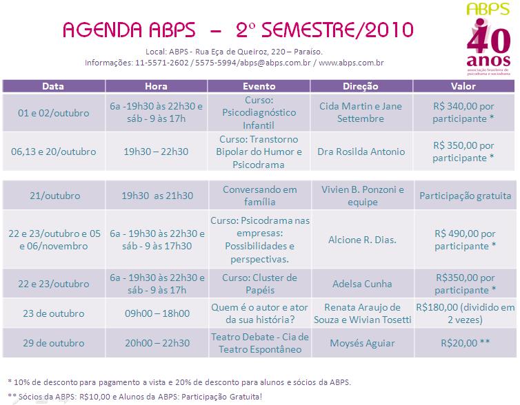 Curso/Evento: Agenda da ABPS - 2º Semestre