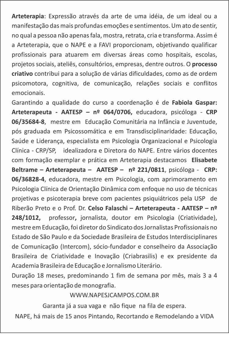 Curso/Evento: Arte, Criatividade e Arteterapia - Especialização