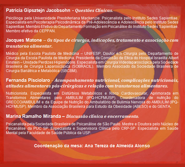 Curso/Evento: Cirurgia bariátrica e Transtorno alimentares: enfoque médico, nutricional e psicanalítico.