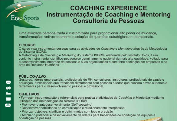 Curso/Evento: Coaching Experience - Instrumentação de Coaching e Mentoring