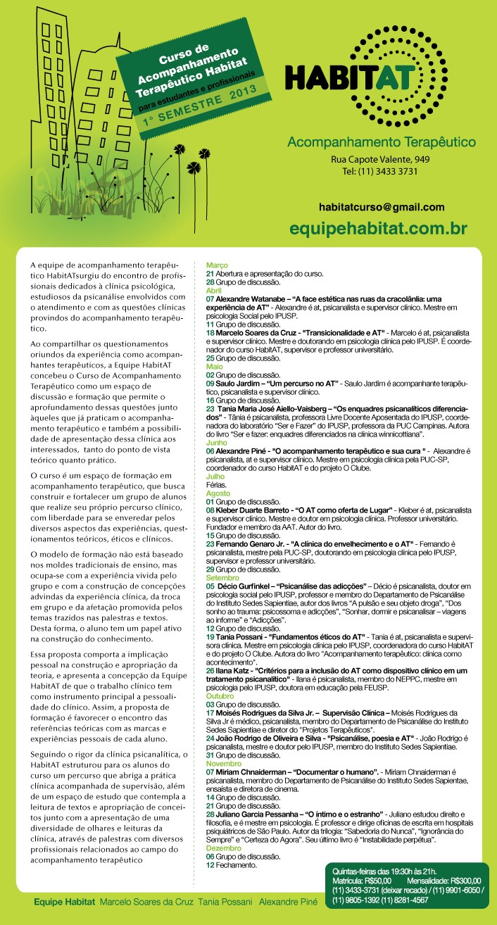 Curso/Evento: Curso de Acompanhamento Terapêutico Habitat