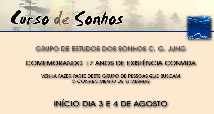 Compreender os sonhos é um caminho que leva ao conhecimento de si mesmo. E por que deveríamos nos conhecer? Nas palavras de Carl Jung, porque “só aquilo que somos tem o poder de nos curar”. Há mais de 17 anos, o Curso de Sonhos, realizado pelo terapeuta junguiano Ascânio Jatobá,oferece conteúdo programático que possibilita trilhar esse caminho. PROGRAMAÇÃO 2009 - CURSO APOSTILADO O curso de sonhos é divido em duas partes: teórica e prática 1a. PARTE - TEÓRICA - Duração: 5 meses - Encontro semanal de 2 horas O Ego - A Consciência - A Persona - A Sombra O Inconsciente - Os Complexos - Os Arquétipos - Os Símbolos Os Sonhos - Os Contos de Fadas - A Anima - O Animus O Self - A Individuação - A Sincronicidade - Tema Livre Conceitos abordados 2a. PARTE - PRÁTICA - Duração permanente Vivência que tem como objetivo o autoconhecimento através dos sonhos e a identificação dos principais conceitos junguianos, nos sonhos dos membros do grupo COORDENAÇÃO Ascânio Jatobá, Psicólogo, Filósofo Pela USP e Psicoterapeuta Junguiano CRP 06/24345-5 HORÁRIO Segunda-feira às 20 horas e Terça-feira às 14 horas VALOR DO CURSO Inscrição - R$50,00 Mensalidade - R$200,00 Ficha de Inscrição, clique aqui Depósito da matrícula, no valor de r$ 50,00, no banco real, agência 0938, c/c 0711446-4, no nome de Ascânio Jatobá. Enviar um e-mail confirmando o depósito. Esta é a forma de garantir sua vaga. LOCAL DO CURSO Rua Santo Antonio, 1271 - CEP: 01314-001 - Bela Vista - São Paulo - SP Clique aqui e veja o mapa Faça sua matrícula com antecedência para garantir sua vaga! INFORMAÇÕES Telefone e Fax: (11) 3104-2345 E-mail: ajatoba@uol.com.br Home Page: www.cursodesonhos.com.br |
