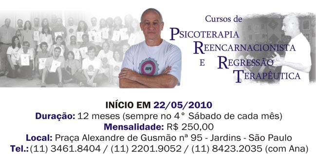 Curso/Evento: Curso de Psicoterapia Reencarnacionista e Regressão Terapêutica