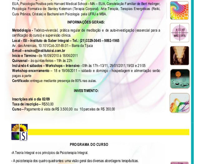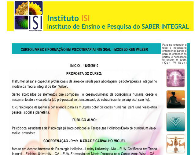 Curso/Evento: Curso livre de formação em psicoterapia integral - ModeloKen Wilber