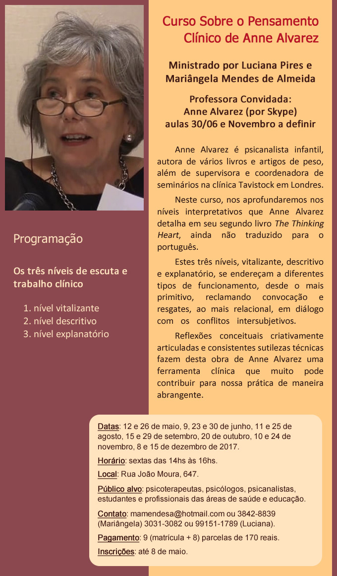 Curso/Evento: Curso sobre o Pensamento Clínico de Anne Alvarez