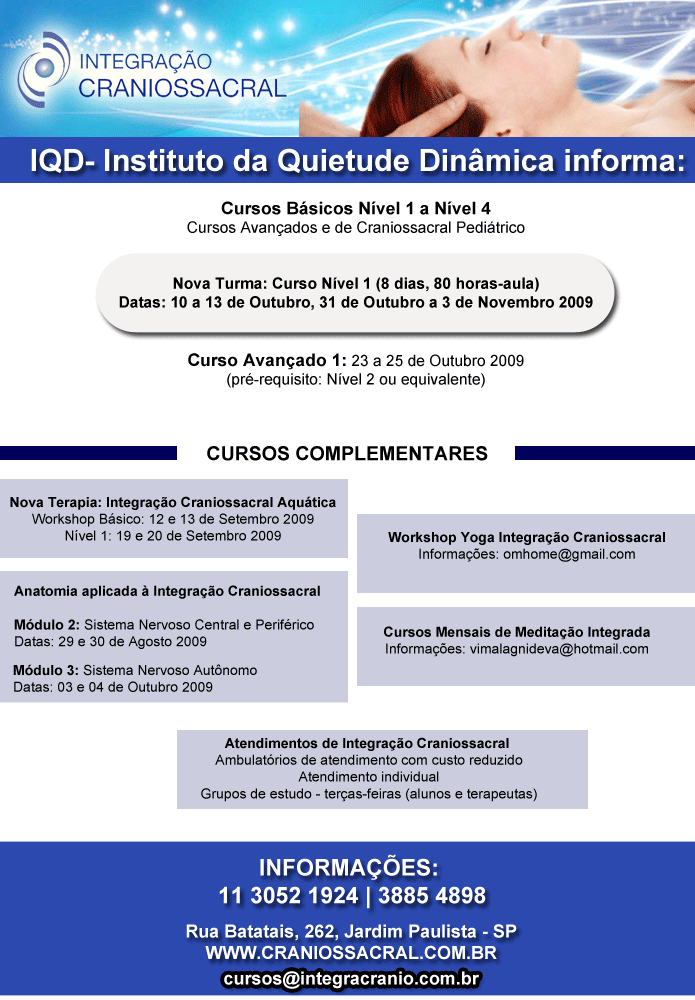 Curso/Evento: Cursos Básico, Avançados e Complementares - Integração Craniossacral