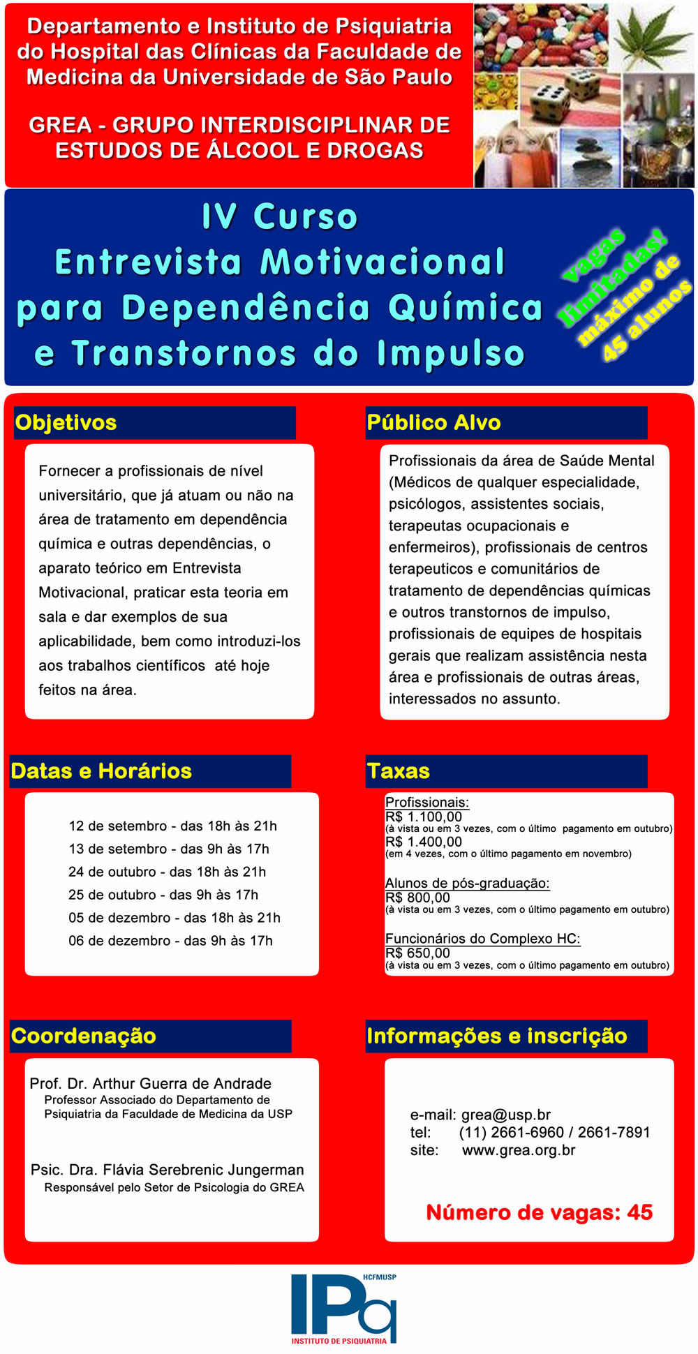 Curso/Evento: Entrevista Motivacional para Dependência Química e Transtornos do Impulso - IV Curso