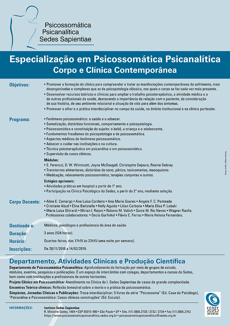 Curso/Evento: Especialização em Psicossomática Psicanalítica - Instituto Sedes Sapientiae