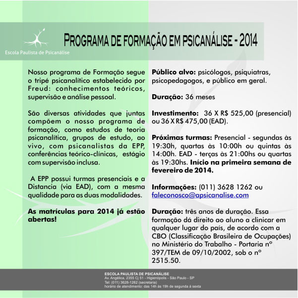Formação em Psicanálise, programe-se...