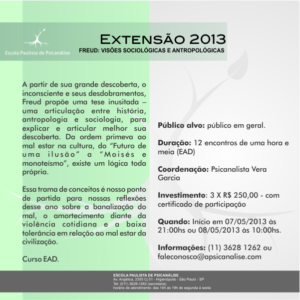 Curso/Evento: Freud: visões sociológicas e antropológicas - EPP extensão