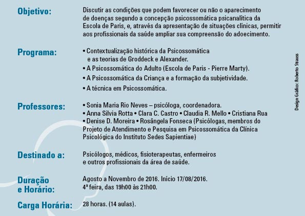 Curso/Evento: Introdução à Psicossomática Psicanalítica: uma visão teórico-clínica