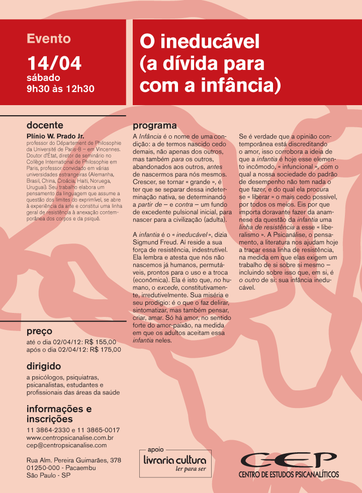 Curso/Evento: O Ineducável (A dívida para com a infância)
