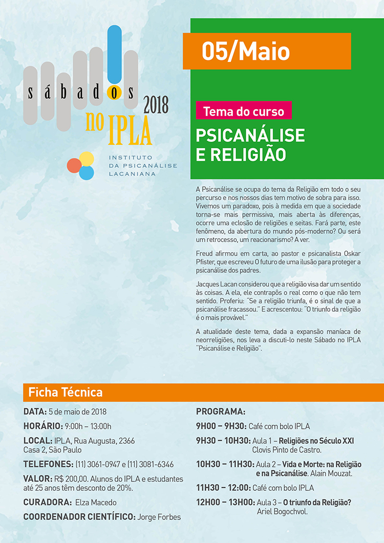 Curso/Evento: Psicanálise e Religião – Sábado no IPLA 5 de maio