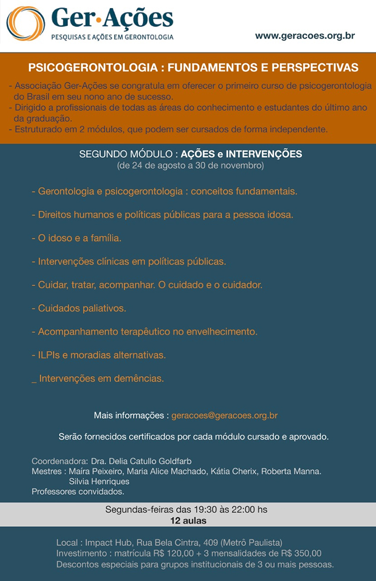 Curso/Evento: Psicogerontologia: Fundamentos e Perspectivas - Ações e Intervenções
