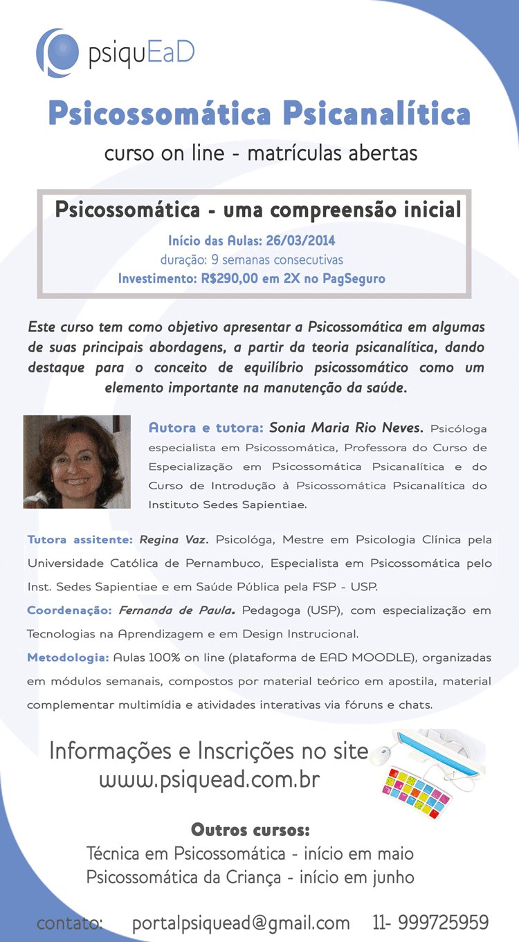 Curso/Evento: Psicossomática Psicanalítica - Curso Online
